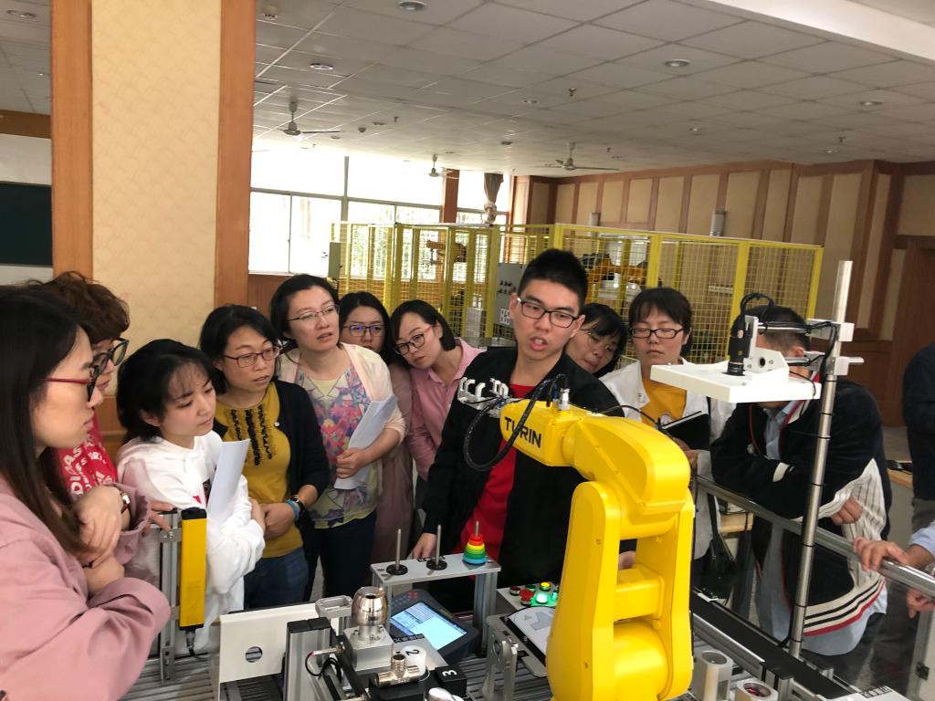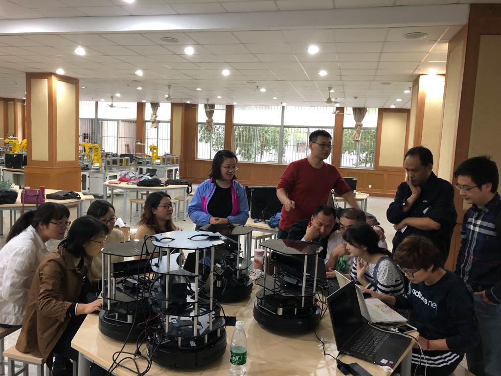 随后,南戈特公司的两位培训工程师分别就移动机器人和工业机器人进行了讲解,理论知识与现场实操相结合,每位教师认真聆听,边学习边实践,碰到问题虚心请教,积极沟通。教师们还就机器人的资料开源和后期开发问题与培训工程师进行了广泛的交流。