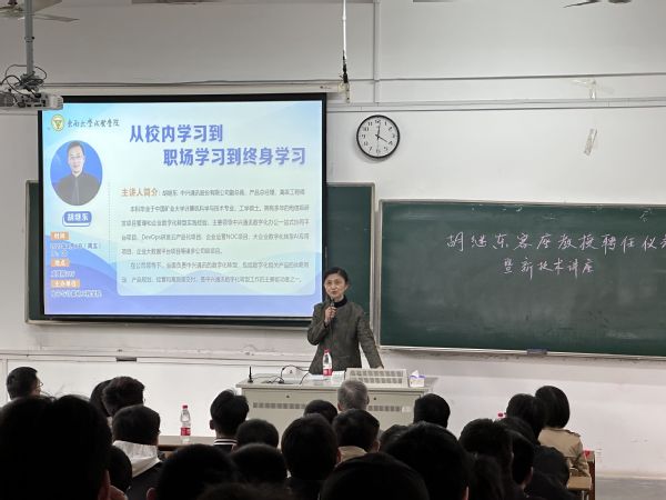 4月7日下午,伟德体育邀请中兴通讯股份有限公司副总裁、产品总经理胡继东高级工程师来校作《从校园学习到职场学习到终生成长》主题报告并受聘为公司客座教授。东南大学成贤公司副经理戴玉蓉、伟德体育党政领导及100余名师生出席报告会。报告会由伟德体育经理王晓蔚主持。