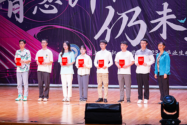 互动环节后,大屏中播放由学院领导及毕业班辅导员们录制的寄语视频和祝福,为莘莘学子送上最殷切的嘱托与美好的祝愿。临近尾声的歌曲串烧《我会等+ 你曾是少年》,让我们回忆成长过程中不可或缺的友情和亲情,并激励大家时刻不忘梦想,并为之奋斗。