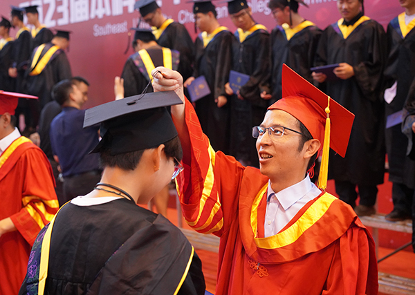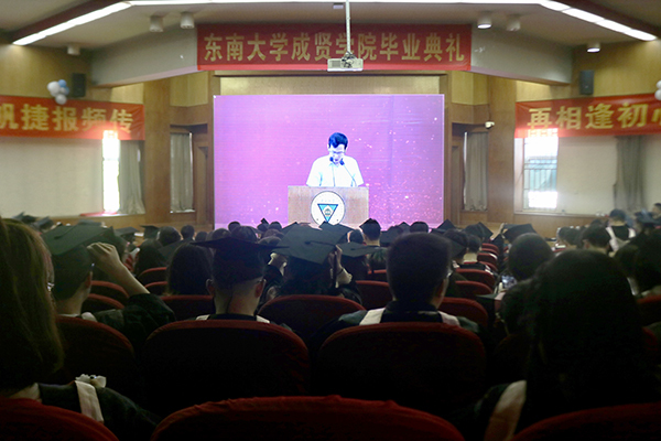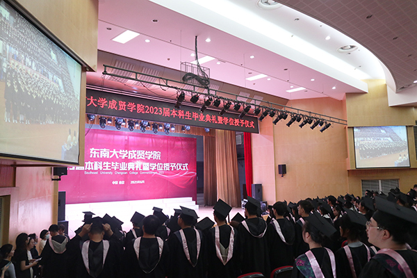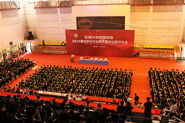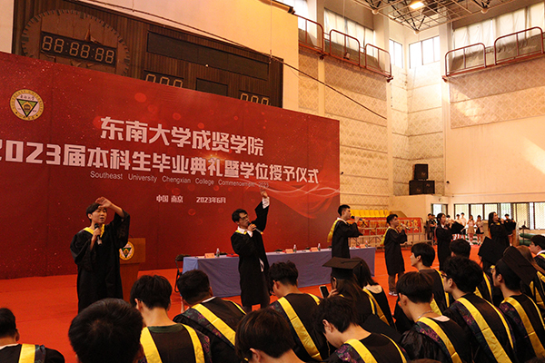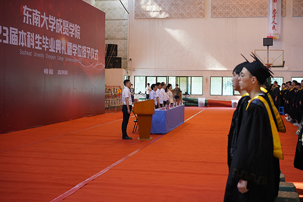 在雄壮的国歌声中,毕业典礼暨学位授予仪式拉开序幕。成贤公司常务副经理黄学良首先致辞,他代表公司理事会、公司党政,对毕业生们致以衷心祝福和热烈祝贺,向付出辛勤劳动的教职员工,始终关注着同学们成长的亲友、社会各界人士以及一直以来给予成贤公司巨大帮助和支持的东南大学领导表示衷心的感谢,并致以崇高敬意和美好祝福!面对2023届毕业学子,他勉励毕业生们勇担使命、踔厉奋发,胸怀爱国之心;勇毅前行、只争朝夕,永立报国之志;勇攀高峰、笃行不怠,练就强国之技。