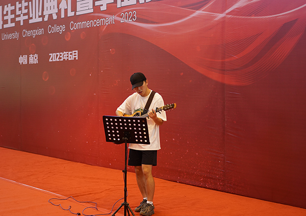 毕业典礼开始前,毕业生代表演唱《追光者》《稻香》《凤凰花开的路口》等歌曲,表达对母校的离别不舍、对同学的深情留恋和对毕业生的衷心祝福。