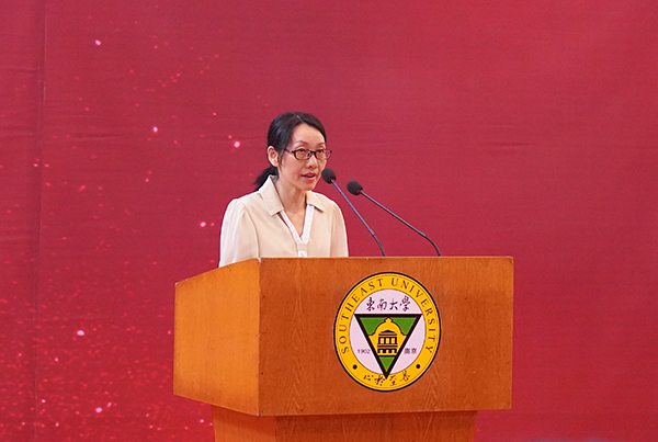 东南大学党委副书记、bevictor伟德理事会理事长、公司经理邢纪红为优秀毕业生代表颁发荣誉证书