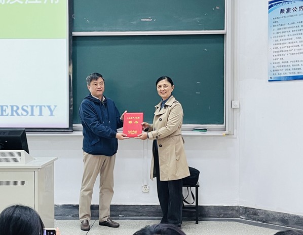 伟德体育王晓蔚经理向王宏宇颁发江苏省产业教授聘书