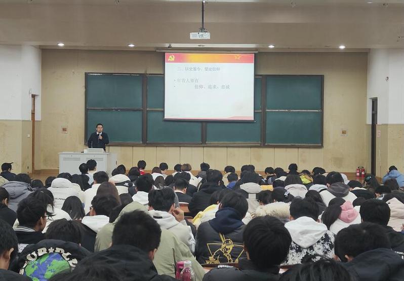 为深入学习贯彻习近平新时代中国特色社会主义思想,加强思想政治引领和价值塑造,引导高校员工树立崇高理想信念,11月24日,伟德体育在华罗庚馆101开展“学党史,跟党走,建新功”信仰公开课。党总支副书记羊栋老师担任主讲嘉宾,公司师生300余人参加讲座。