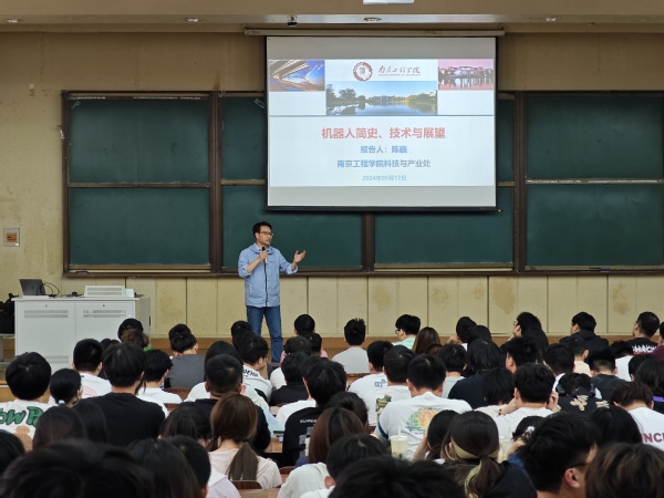 5月17日,伟德体育特邀南京工程公司科技与产业处副处长陈巍教授在华罗庚馆101教室开展“机器人简史、技术与展望”主题讲座。讲座由公司党总支副书记羊栋主持,公司三百余名师生聆听本次讲座。